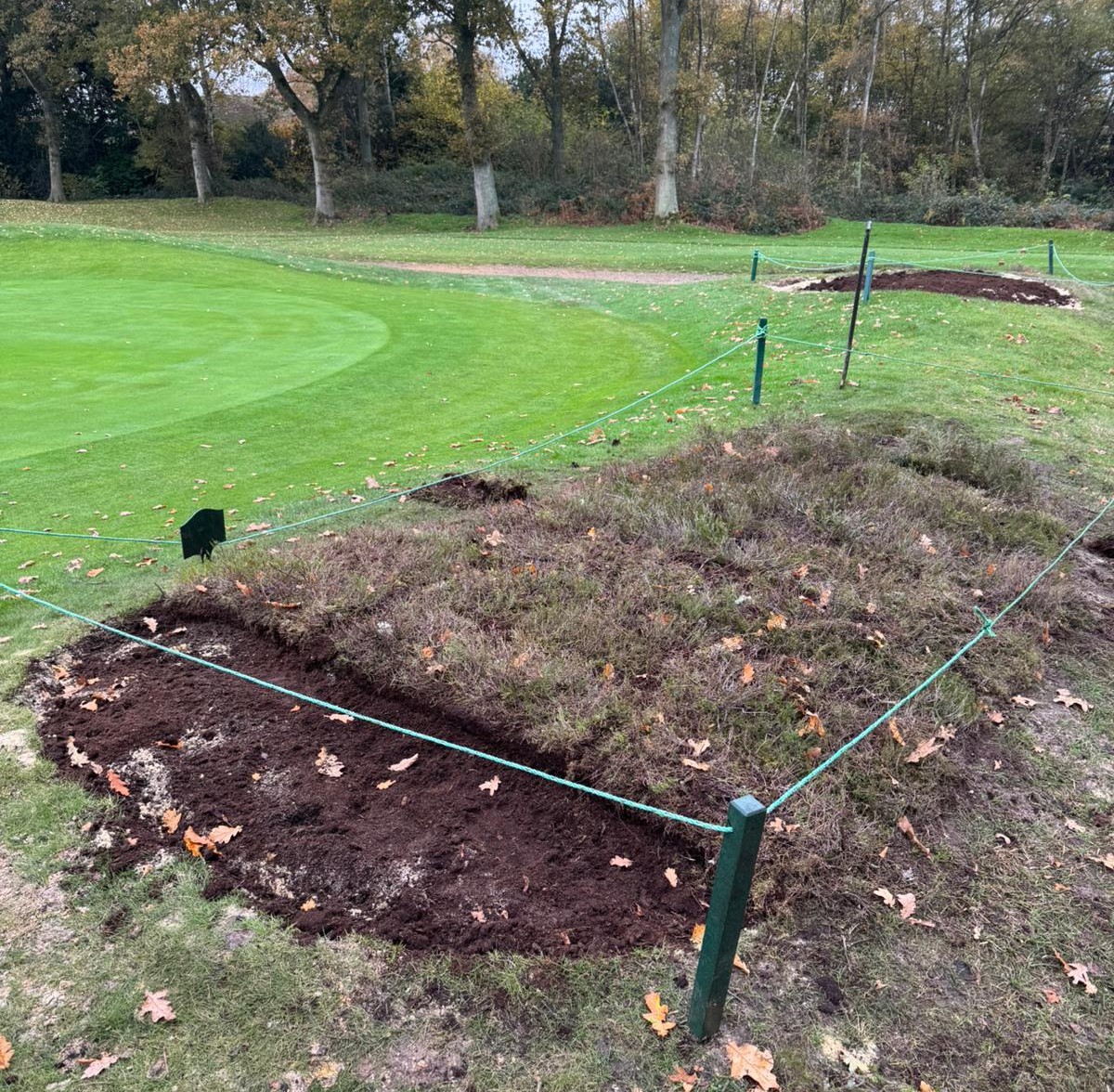 This week was started off with finishing the top dressing of the fairways. This all went to plan and the rain wasn’t as bad as first thought, so this enabled us to finish on time with minimal wear to the course. We had 25mm of rain in the end, which was a lot better than first expected. We will continue to use the drag mat to try and work in the sand and get them back to looking like a fairway and not a beach. I am also very pleased with the germination we have been getting from the earlier overseeding that was carried out on most of the fairways.